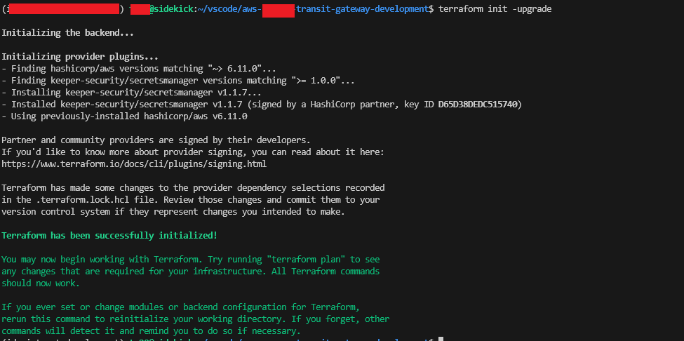 Once you have added the new provider (KSM – secretsmanager) you’ll likely need to run a “terraform init” to load this provider into your Terraform environment.