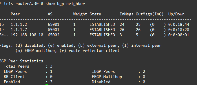 But first, we need to remove the “next-hop-self” configuration from Router A, so run the following on Router A: