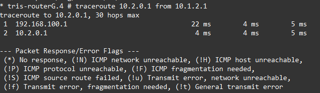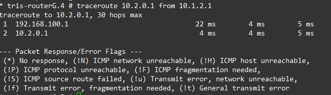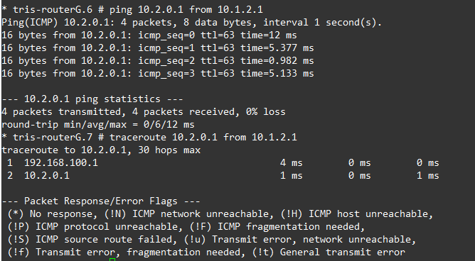OK, so that now looks better for Router B and G. The route has been installed successfully, which is what we want. Tests show that we can reach Router C’s LAN network (10.2.0.1) from Router G’s LAN network (10.1.2.1).