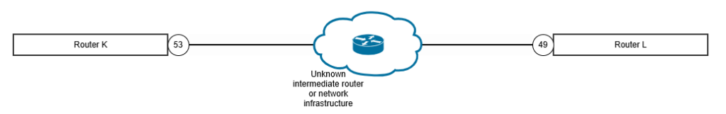 Remember that we want the Router K to Router L point to point link to have OSPF enabled on the Router K side, so that subnet/network appears in OSPF, so the route will be seen as feasible to BGP, but crucially, it must be set to passive, because we don’t want it to be able to accept OSPF join requests from Router L (if that was ever accidentally configured).