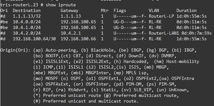 configure vlan "RouterL-LAN1" ipaddress 10.4.2.1/24